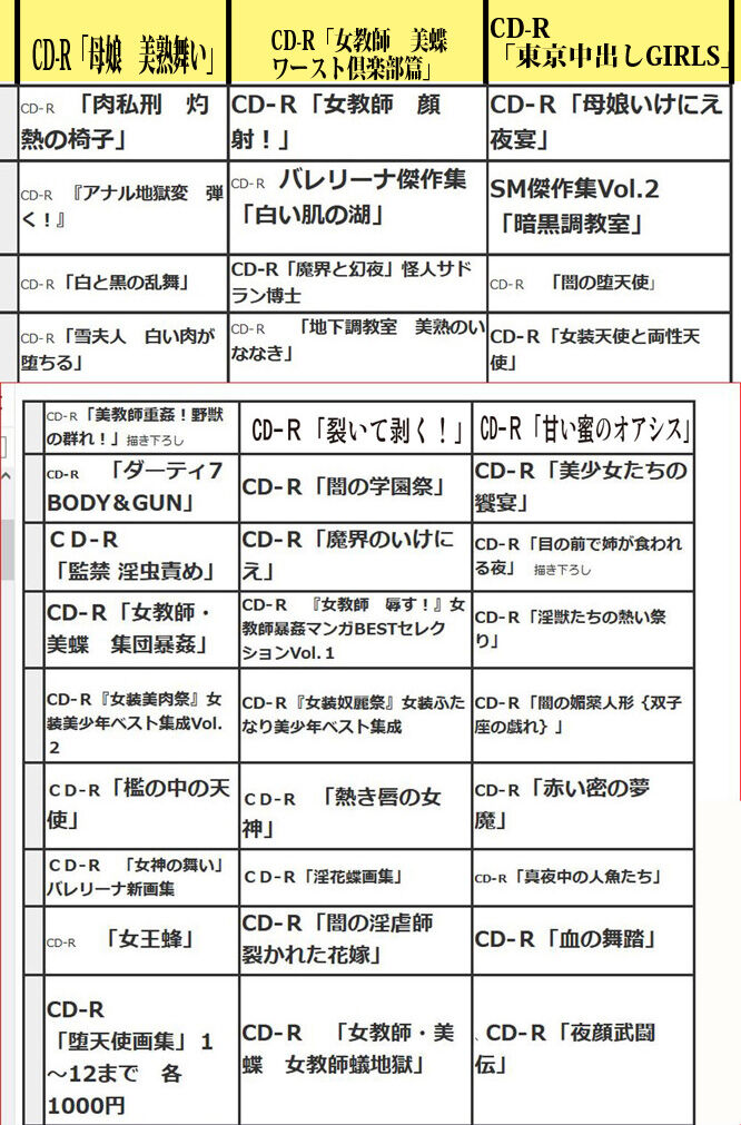 ●枚数{例・CD-R「女教師・美蝶 黄金の指篇」を1枚……}、